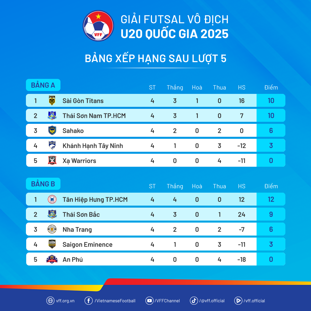 Lượt trận cuối vòng bảng đã khép lại với những màn trình diễn mãn nhãn và bùng nổ cảm xúc. Từ chiến thắng hủy diệt của Thái Sơn Bắc, sự bùng nổ bất ngờ của Nha Trang, cho đến bản lĩnh của Sài Gòn Titans và Thái Sơn Nam – tất cả đã làm nên một vòng bảng giàu kịch tính. Giờ đây, người hâm mộ futsal Việt Nam đang nóng lòng chờ đợi những trận bán kết – nơi 4 đội mạnh nhất sẽ quyết chiến cho tấm vé vào chung kết.